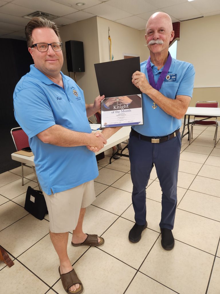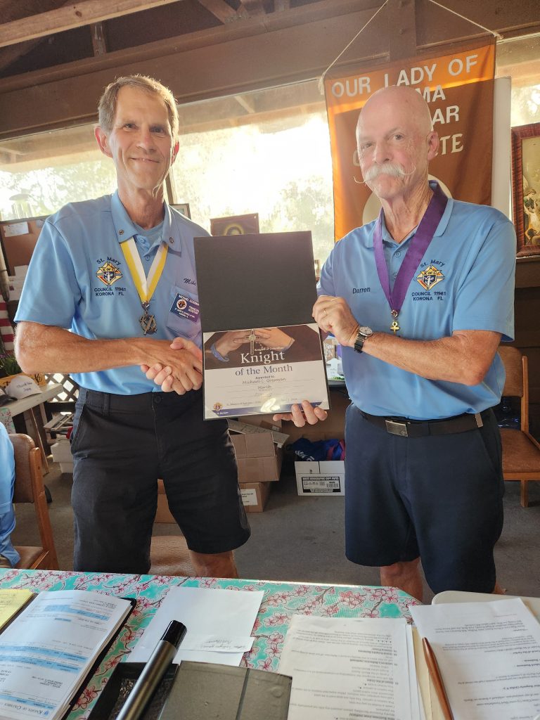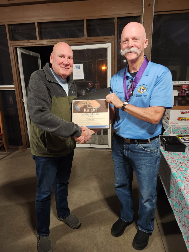 Knight of the Month: September 2025 – Mike GossmanKnight of the Month: August 2025 – Joe MarottiKnight of the Month: July 2025 – Tony FlynnKnight of the MOnth: June 2025 – Paul VicarioKnight of the Month: April 2025 – Nestor RamosKnight of the Month: March 2025 – Mike GossmanKnight of the Month: February 2025 – Ken FehnerKnight of the Month: November 2024 – Rich FrieseFamily of the Month: October 2024 – John & Linda ThomasKnight of the Month: October 2024 – Fred HartingKnight of the Month: August 2024 – Chris GrecekKnight of the Month: June 2024 – John PicucciKnight of the Month: May 2024 – Joe MarottiFamily of the Month: February 2024 – Mike & Melissa GossmanKnight of the Month: January 2024 – Chris GrecekAppreciation Award: Website Assistance – Michael BoullionAppreciation Award: Outstanding District Deputy – Kevin Ryan